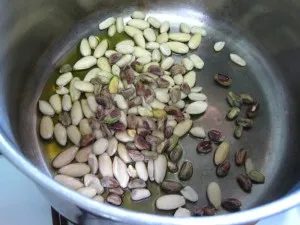 En una cazuela se dora en aceite las almendras, las pasitas y las nueces, se sacan, se añade la cebolla picadita y se sofríe hasta dorar, luego se le agrega la soja deshidratada, previamente cocida y ablandada, en el mismo aceite, se coloca la sal y la pimienta, luego añadimos el arroz y sofreímos un poco, revolviendolo con la soja, se echa el caldo de verduras, y los condimentos al gusto…se cocina hasta que no quede caldo, se baja el fuego y se tapa, al momento de servir se echan por encima los frutos secos y se revuelve. Se sirve caliente como acompañante o solo como sea la preferencia o si se es vegano o vegetariano.