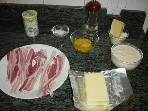 Este asado de papas acompañado de cebolla y tocineta o panceta es un excelente contorno y de aporte calórico importante, la propiedades del almidón de la papa son en minerales magnesio, potasio, hierro y calcio al igual que los de la cebolla, la cual tiene componentes que fortalecen el sistema inmune, tienen propiedades astringentes y antibioticas.