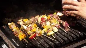 Las brochetas tierra mal tienen versiones, para vegetarianos y para quienes gustan de comer carne y mariscos o productos del mar. Los productos del mar están cargados de vitaminas A, D, E y omega 3. ademas de una gran cantidad de proteínas y ácidos grasos importantes para el sistema muscular y cardiovascular, además si se combinan con legumbres fortalecemos en minerales y en contenidos esta fabulosa receta, como el hierro, fósforo y potasio. Ten un picnic de jardín con tus amigos un sábado por la tarde con esta maravillosa receta. Esta brocheta es una fabulosa versión de brocheta en donde seras productos del mar combinados con pollo carne y legumbres como calabacin, berenjenas, papas, cebollas y pimentón. En algunas partes del mundo estas brochetas forman parte de la gastronomía de lugares costeños y tropicales, pero también es común encontrarla en la cocina mediterránea. los beneficios por sus componentes al organismo son muchos, probablemente el omega 3 sea uno de los principales atributos y por ello es usada en regímenes cardiovasculares.