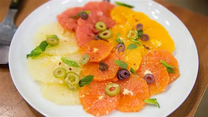 La ensalada cítrica es na variedad exótica, tropical, muy fresca y original que puedes hacer en casa, en una barbacoa o simplemente para comer en un tarde calurosa. Es muy nutritiva por su contenido poderoso de vitamina C y adicionalmente se le suman los numerosos minerales tales como potasio, calcio, sodio y hierro, ademas de las vitaminas mencionado también hay que decir que contiene gran cantidad de agua y fructosa que proviene de los jugos naturales de las frutas. Esta ensalada se sirve fresca por esta misma razón. Esta ensalada de cítricos es como la versión de invierno de un plato de tomates de verano, esto es por su frescura. Tiene el mismo jugoso dulce y un sabor vibrante similar al de las frutas o tan fresco como la misma. Y, al igual que esa ensalada de frutas, esta es también una de las ensaladas más bonitas y más fácil de preparar en casa. Es importante advertir que esta ensalada de sirve inmediatamente después de hacerla porque se llena de los jugos propios de la fruta y se pierde la frescura de la fruta sólida. Esta ensalada tiene poder diurético e hidratante.
