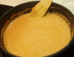 Calentar las especias en una cacerola profunda antiadherente, agregar la pasta preparada y saltear a medio fuego durante 2 minutos. Agregue la leche de coco, la piña y la sal, mezcle bien y cocine a fuego medio durante 2 minutos, mientras se agita continuamente. Servir caliente, como salsa para una pasta, como aderezo para cualquier proteína, carnes o pescado, esta salsa exótica la puedes comes para acompañar algún snack salado y para disfrutar en familia aprovechando todos los beneficios que produce comerlas