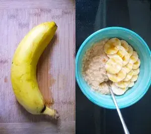 Con un tenedor tritura las dos bananas y mezclamos las 4 cucharadas de copos o de hojuelas de avena. Dividimos la masa en ocho partes y con las manos hacemos circulas y le damos forma de galletas pequeñas lo más circular posible. Luego, Las colocamos en una bandeja de horno sobre una base anti-adherente de silicona o papel de horno, o tomamos una bandeja de horno y la rociamos con harina o manteca, Cocemos durante 20 minutos o cuando veamos que los copos de avena están tostados. Dejamos enfriar lo suficiente y ya están listas para comer o llevar a tu rutina diaria